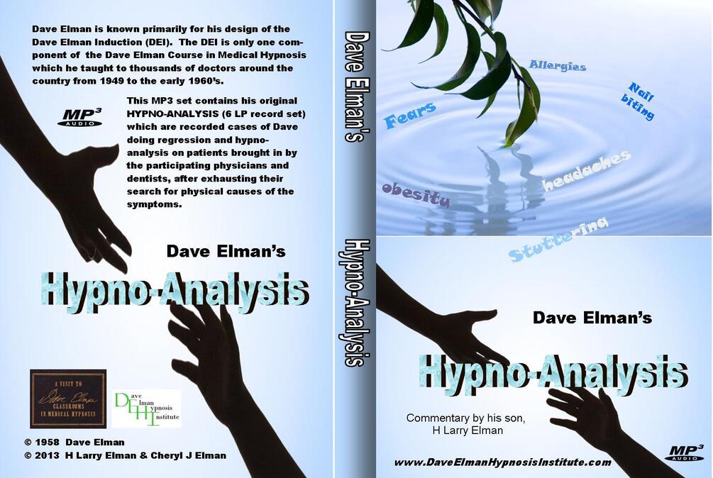 This MP3 set contains his original HYPNO-ANALYSIS (6 record set) which are recorded cases of Dave doing regression and Hypno-analysis on patients. These patients were brought in by the participating physicians and dentists, after exhausting their search for physical causes of the presenting symptoms. There is also a book included which was in the record album set, plus additional commentary by his son, H Larry Elman